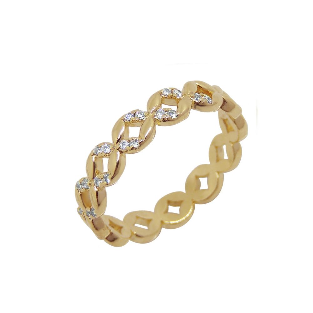 Anel Elos Cravejados com microzircônias na cor cristal. Joia banhada com 10 camadas de ouro 18K , tratamento antialérgico e cm garantia de 1 ano. Lindo anel para compor look despojado pões pode ser usado com outros e ou em qualquer dedo.