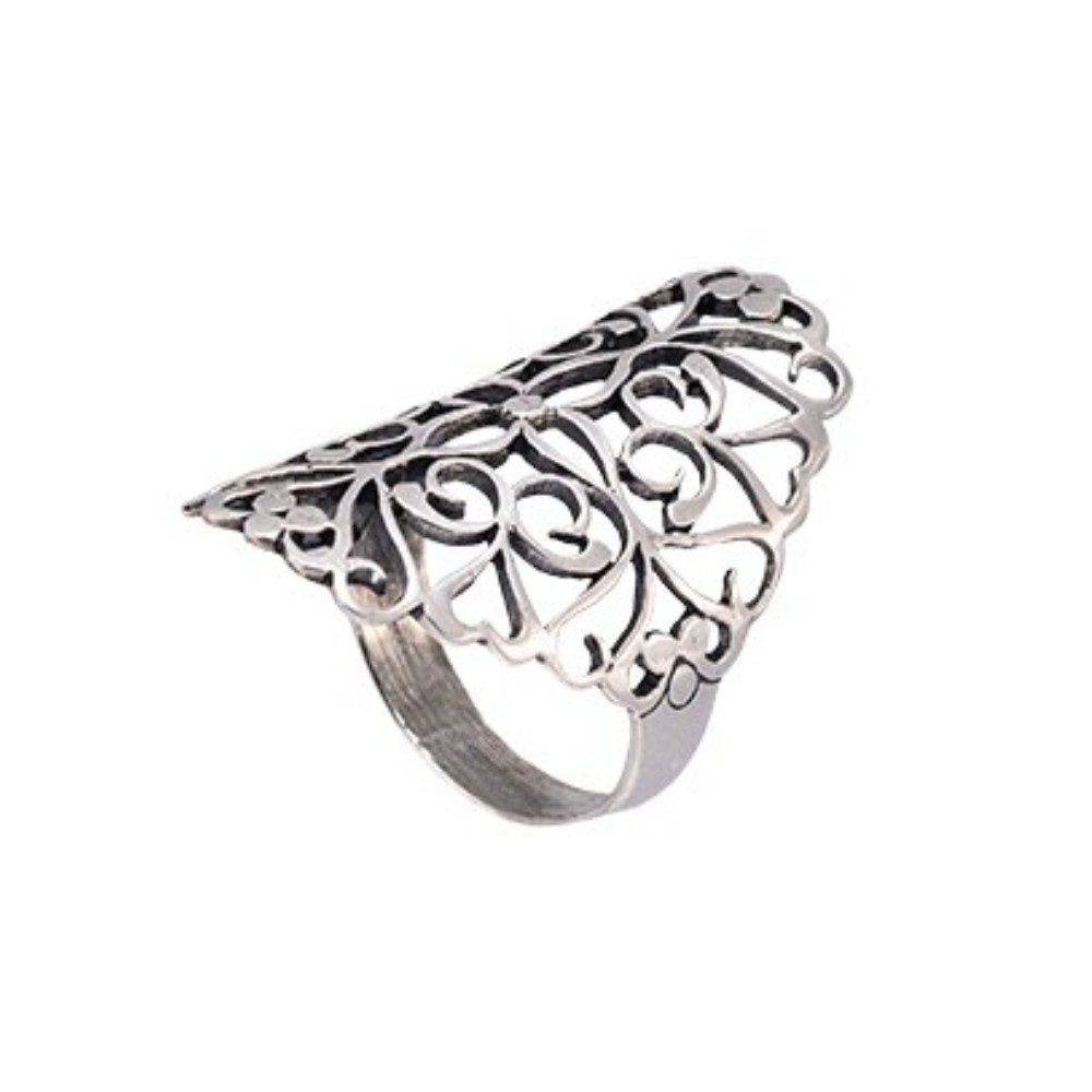 Clássico e elegante maxxi anel trabalhado com flores e corações em prata 925 envelhecida com garantia vitalícia. O brilho da perfeição em suas mãos.