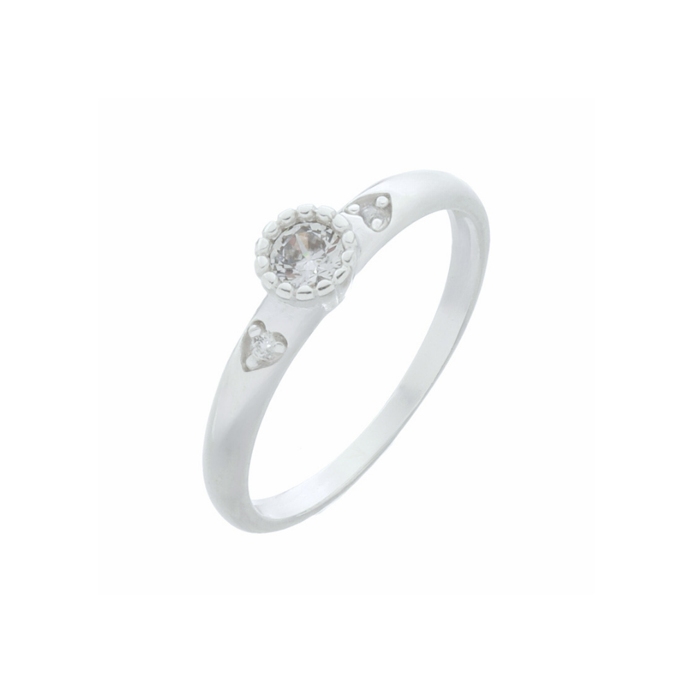 Elegância e delicadeza neste anel cravado com uma zircônia redonda no meio e com 2 corações na lateral cravados com zircônia na cor cristal, em prata 925 e com garantia vitalícia no metal. O brilho da perfeição em suas mãos.