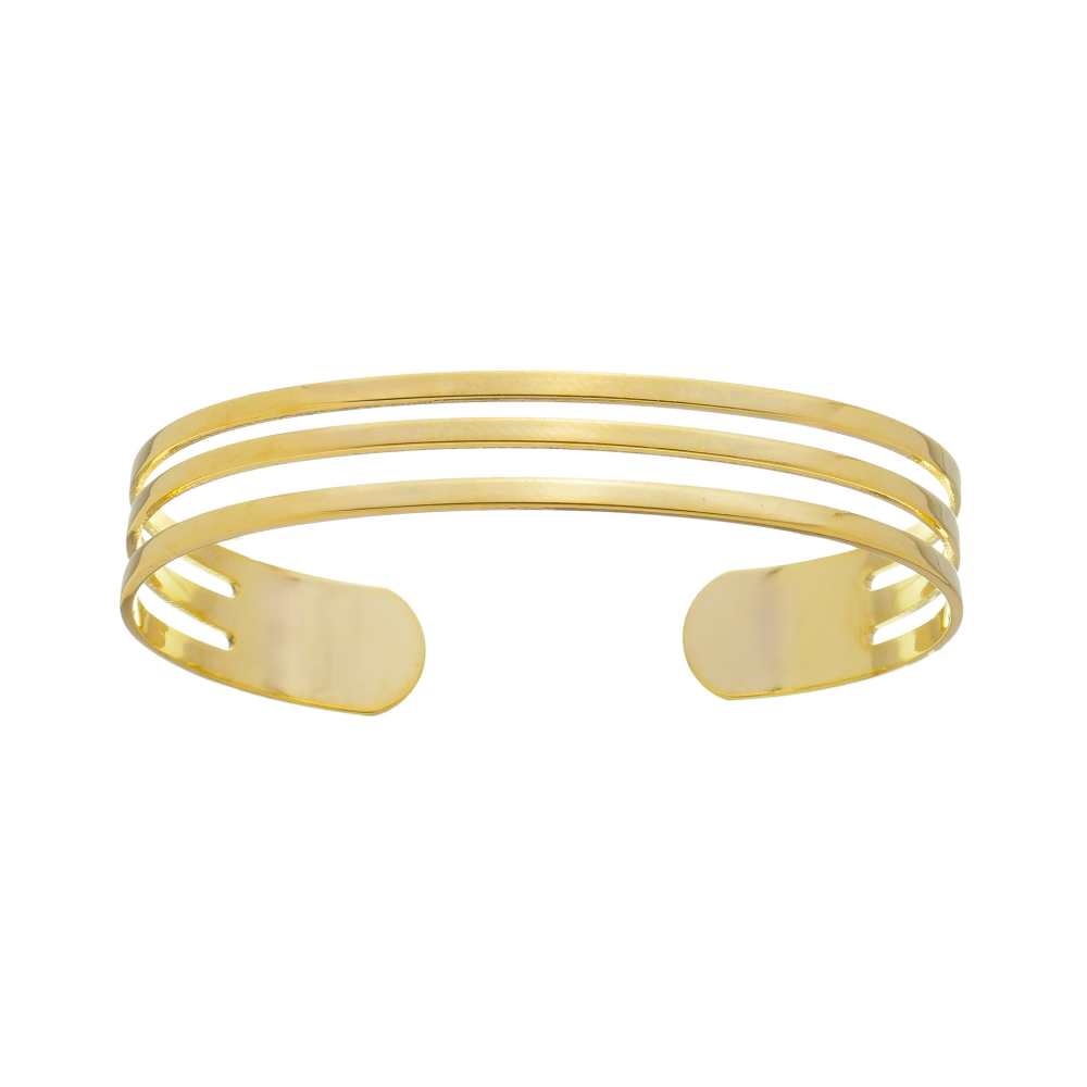 Moderno e elegante bracelete liso design 3 fios. Semijoia banhada com 10 miléssimos de ouro 18k, tratamento antialérgico e garantia de 1 ano. Adicione um toque de sofisticação ao seu estilo.