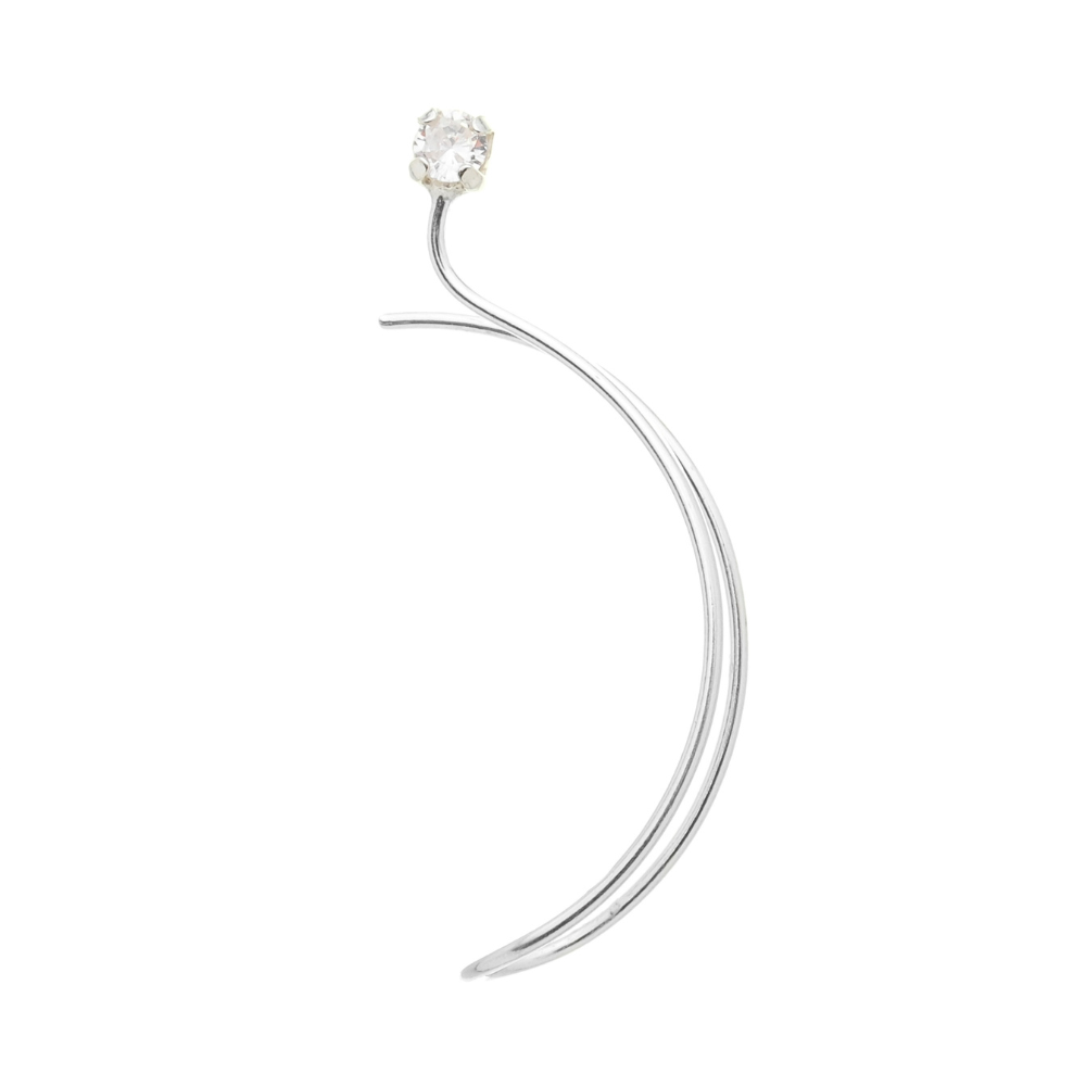 Moderno e luxuoso brinco unilateral (uso de um só lado) tipo ear cuff de encaixe na orelha, com ponto de luz zircônia na cor cristal. Prata 925 com garantia vitalícia no metal. Dê um toque extra de sofisticação ao seu look com uma joia elegante e única. 1 un