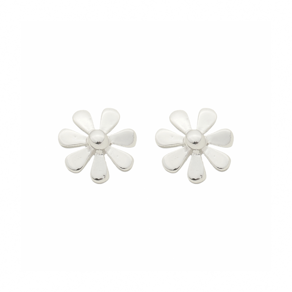 Moderno e delicado brinco pequeno no formado de flor margarida com tarraxas. Prata branca 925 com garantia vitalícia no metal. Dê o toque final que faltava para o seu look ficar perfeito.