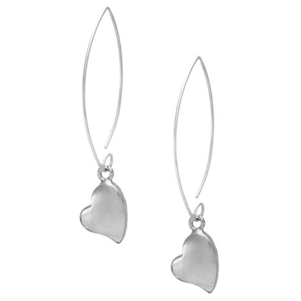 Moderno e casual brinco anzol com pingente de coração em prata 925, medindo 5 cm. Garantia vitalícia. Você merece o melhor.