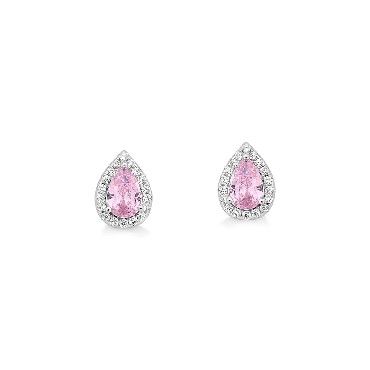 Luxuoso e delicado brinco no formato de gota zircônia na cor morganita e cravejado com microzirconias em prata 925 com banho de ródio. Garantia vitalícia no metal.