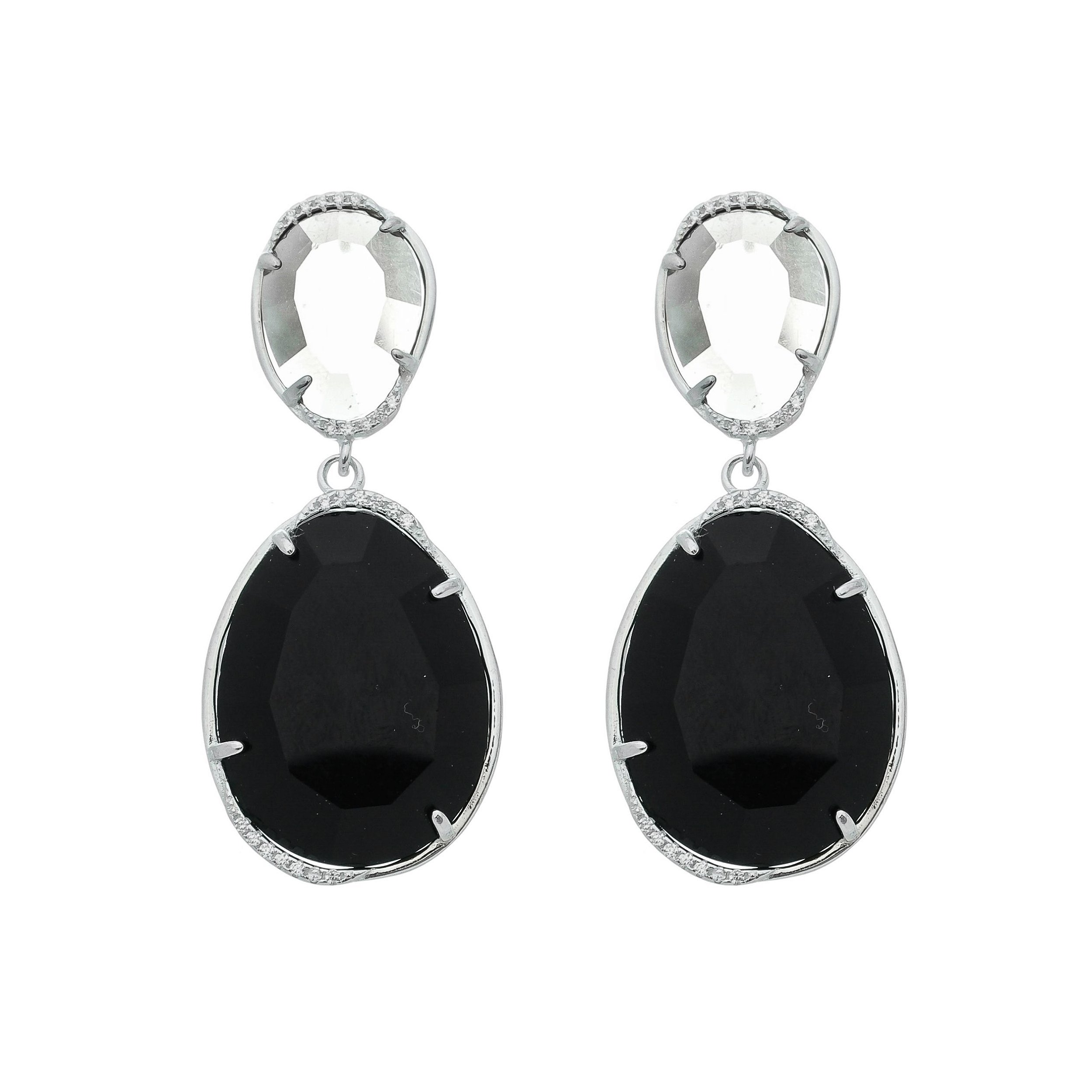Brinco Grande de 5 cm com zircônias de 18mm na cor fumê e 28mm na cor preta com garantia vitalícia no metal. Invista em você.