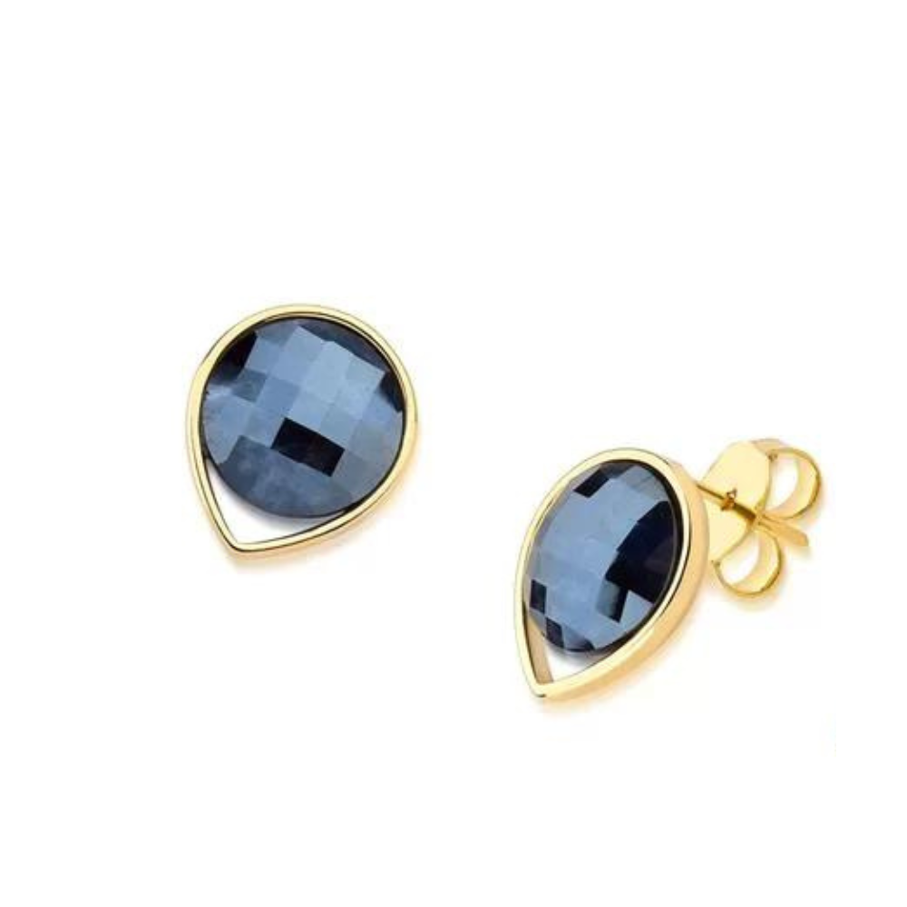 Moderno e requintado brinco com pedra natural azul Sodalita facetada e perolada com tarraxa grande. Semijoia banhado em ouro 18k, tratamento antialérgico e garantia de 1 ano. Uma mulher com esse brinco não quer guerra com ninguém.
