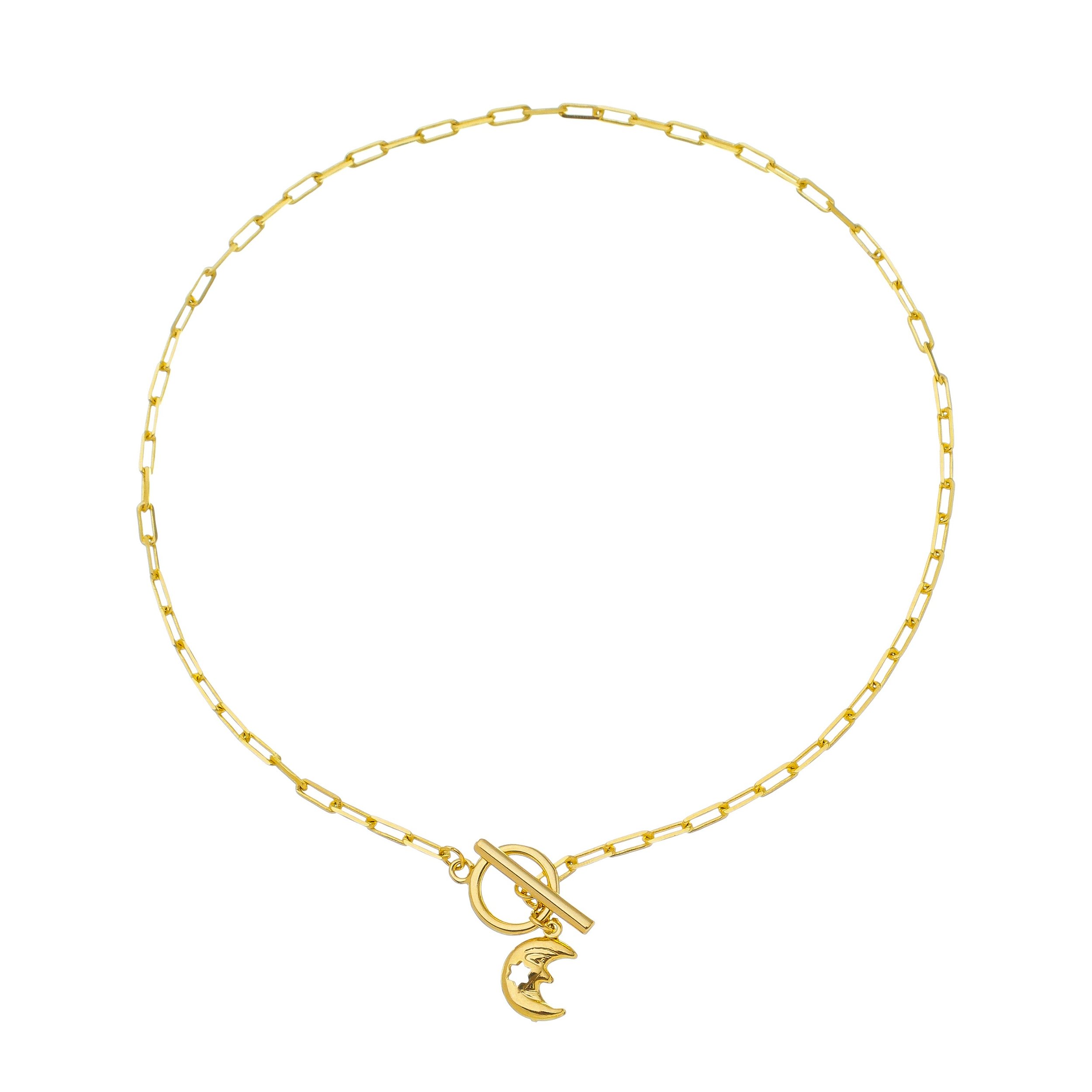 Moderna e casual essa corrente tipo cartier com fecho t e com pingente lua , dá ao seu look um toque especial. Joia banhada com 10 miléssimos de ouro 18K, antialérgica e com garantia de 1 ano. Com você em todos os momentos, destacando sua beleza e grandiosidade.
