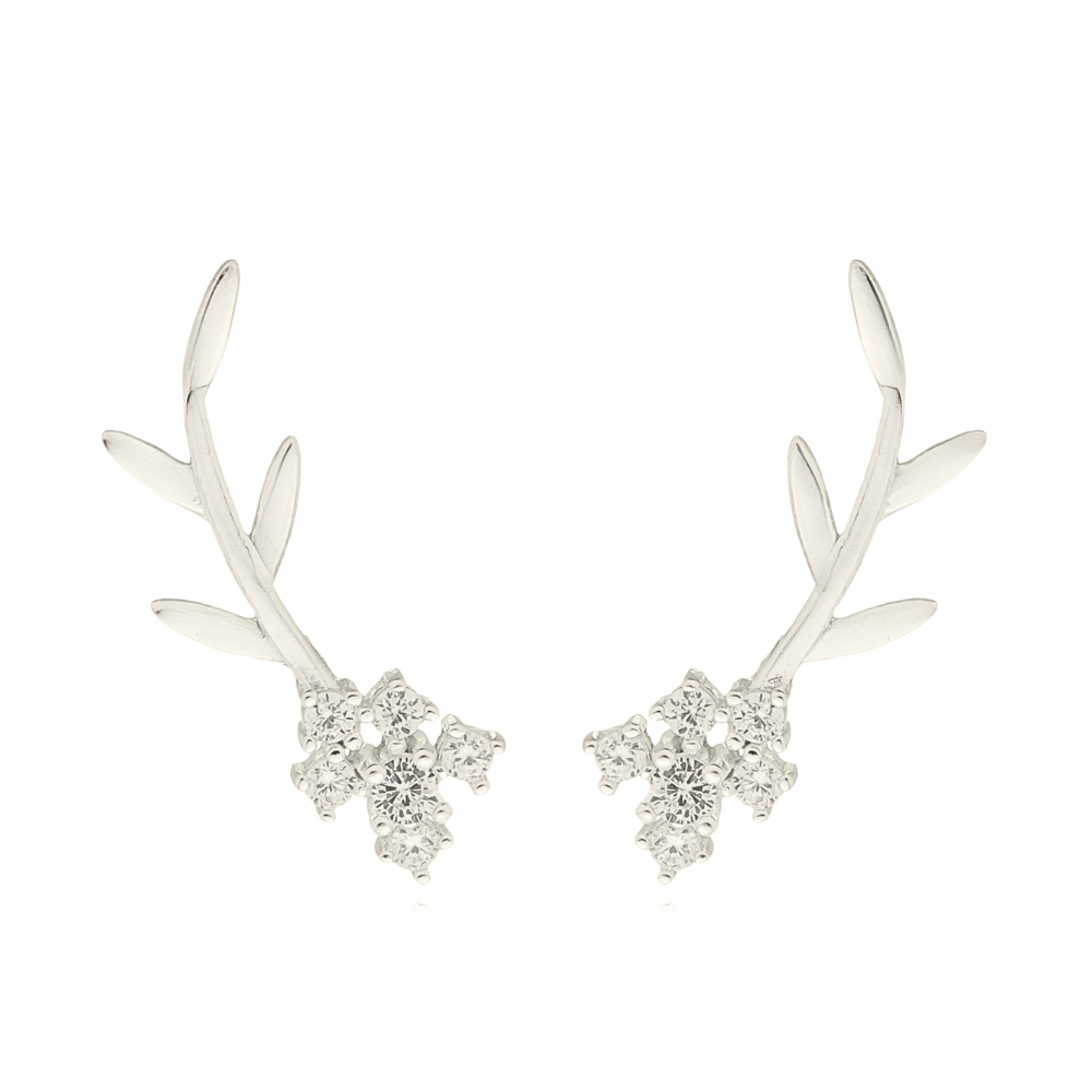 Modernidade e delicadeza você encontra neste par de brincos modelo Ear cuff flor cravejada com zircônias na cor cristal e folhas lisas em prata 925. Com garantia vitalícia no metal. Com você em todos os momentos.