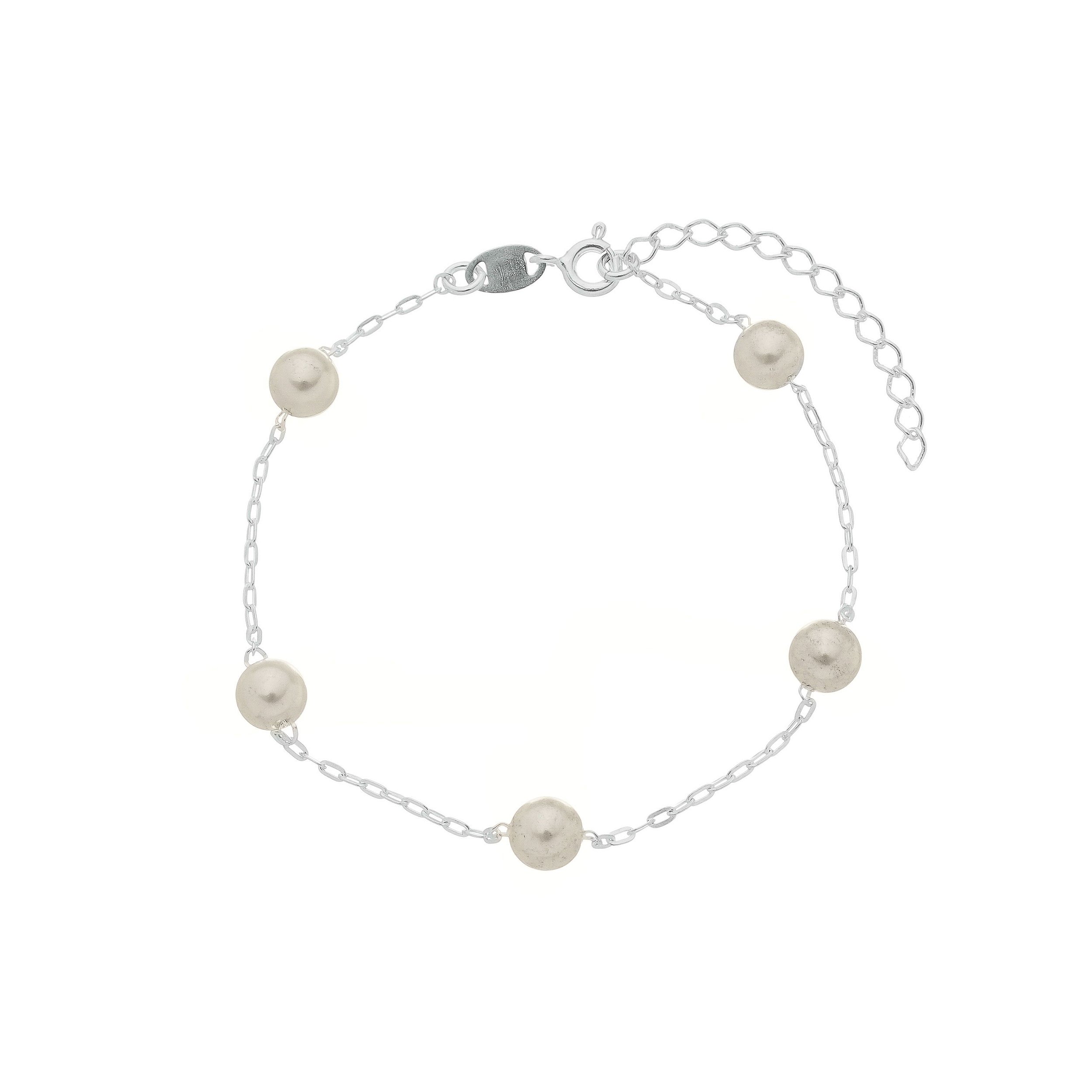 Delicada pulseira com corrente tipo americana e fecho bóia em prata 925 e pérolas de água doce. Garantia vitalícia no metal.