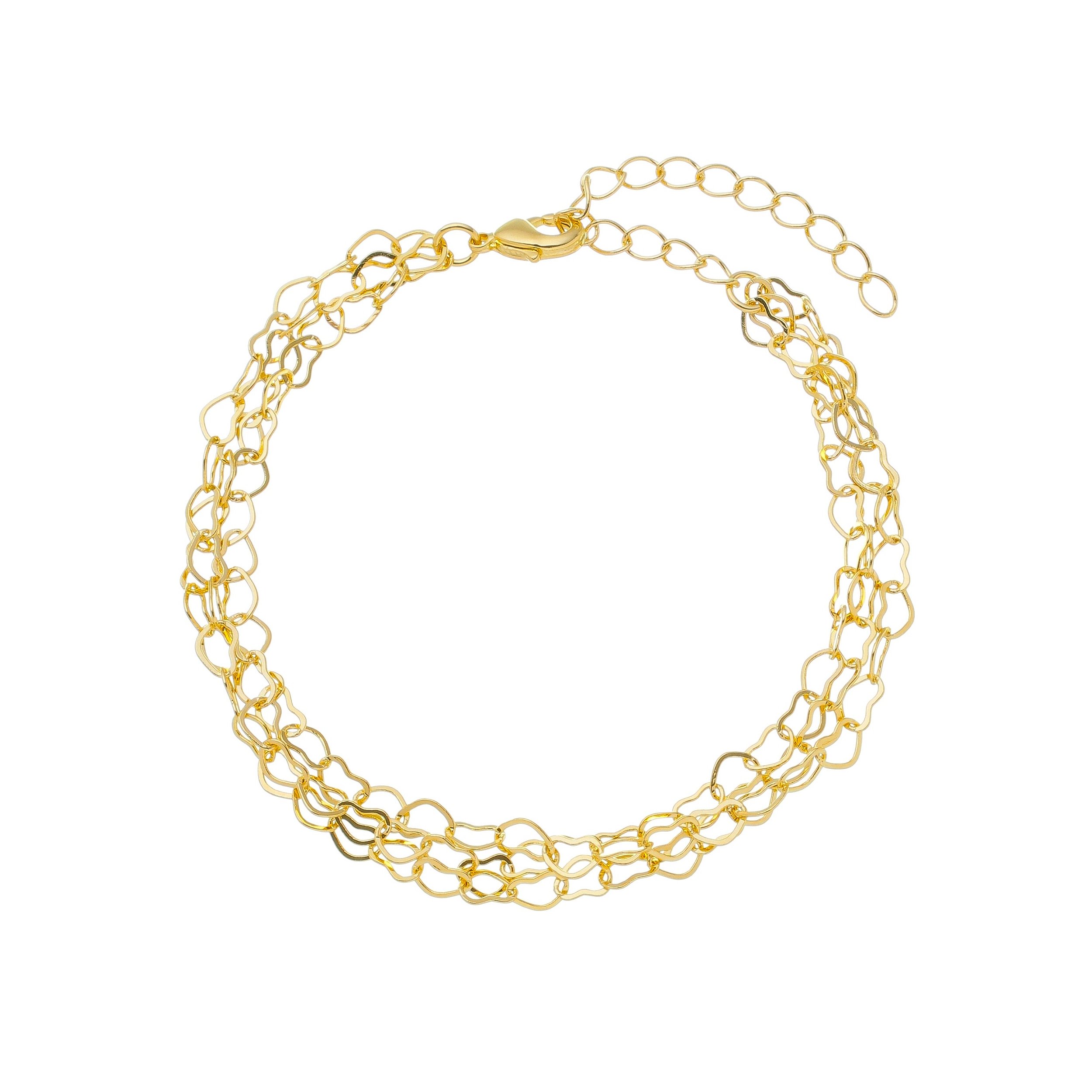 Pulseira com 3 fios de corações, semijoia banhada com 10 milésimos de ouro 18K, tratamento antialérgico e um ano de garantia. Com você em todos os momentos, destacando sua beleza e grandiosidade.