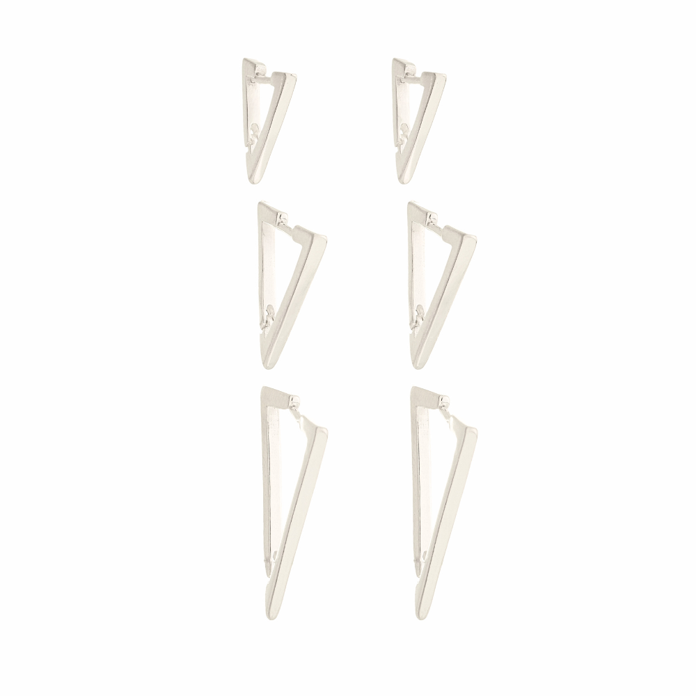Modernidade e sofisticação você encontra neste lindo trio de brincos articulados no formato de triângulo e com fecho click em prata 925. Garantia vitalícia no metal. Com você em todos os momentos, elevando a sua autoestima.